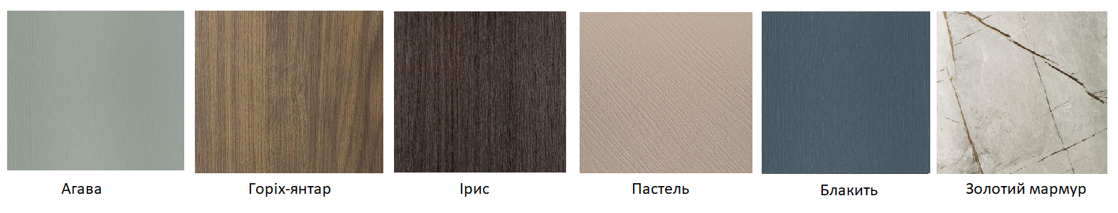 Дана модель комплектується стільницею зі акрилового каменю шириною 76 см італійського виробництва. Стільниця має отвір для монтажу змішувача та накладної раковини. На вибір є три варіанти кольору стільниці. Також в комплекті сортер у нижню шухляду бренду Gollinucci (Італія), навіси Camar (Італія). Окремо можна доукомплектувати додатковим сортером у нижню шухляду.
