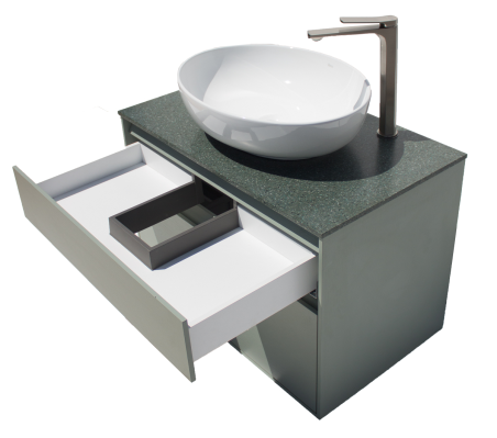 Дана модель комплектується стільницею зі акрилового каменю шириною 76 см італійського виробництва. Стільниця має отвір для монтажу змішувача та накладної раковини. На вибір є три варіанти кольору стільниці. Також в комплекті сортер у нижню шухляду бренду Gollinucci (Італія), навіси Camar (Італія). Окремо можна доукомплектувати додатковим сортером у нижню шухляду.